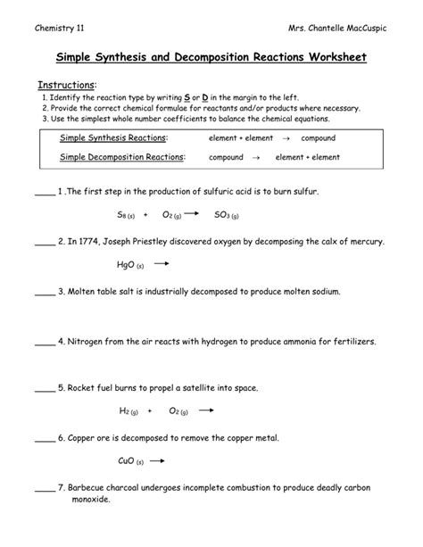 Read Online Decomposition Reaction Worksheet With Answers Reader By Click Button. Decomposition Reaction Worksheet With Answers it’s easy to recommend a new book category such as Novel, journal, comic, magazin, ect. You see it and you just know that the designer is also an author and understands the challenges involved with having a good book. You can easy klick for detailing book and you can read it online, even you can download it
