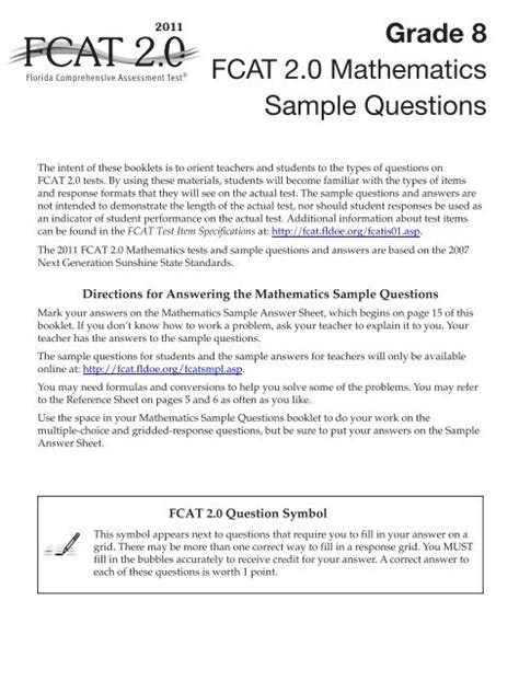 Read Online Fcat 2 0 2011 Grade 7 Mathematics Sample Questions Answer Key Epub